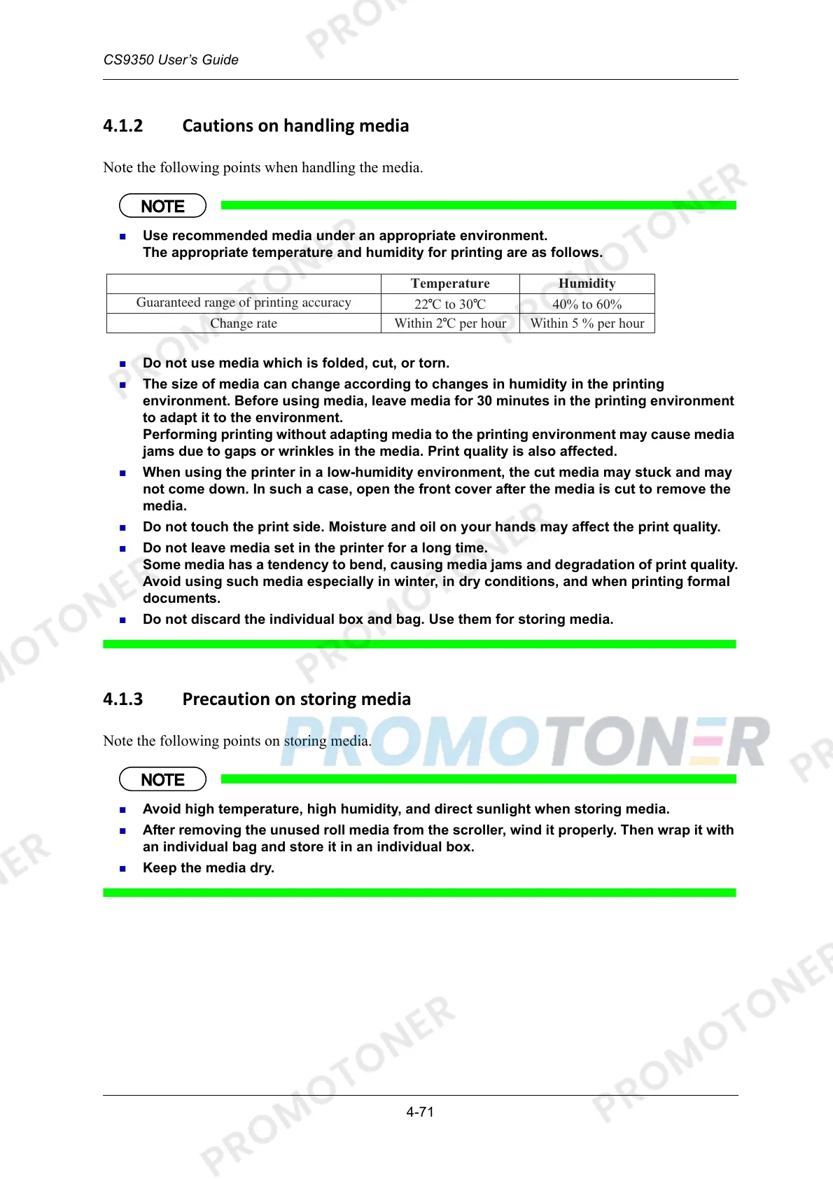 environment. Before using media, leave media for 30 minutes in the printing environment