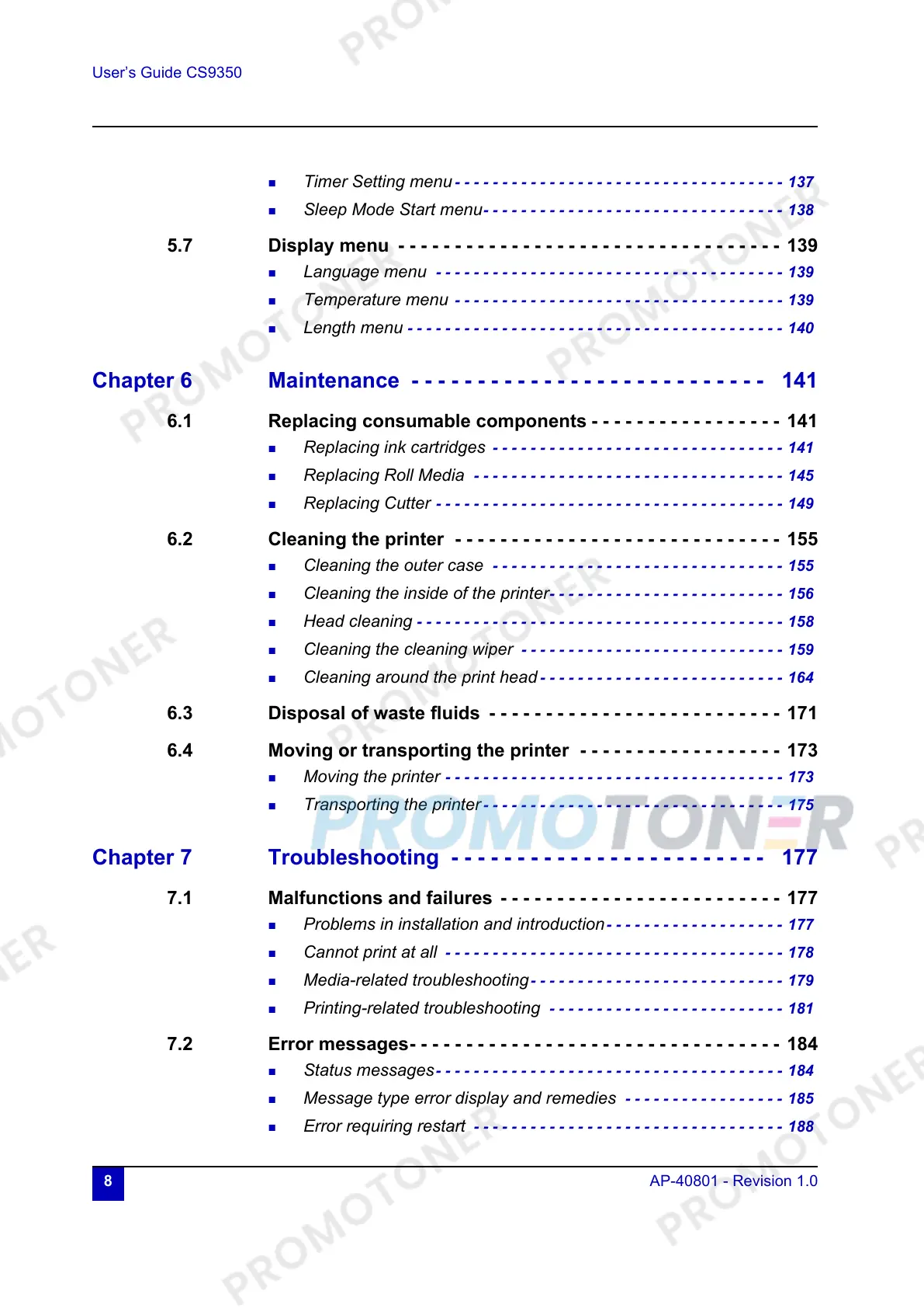 6.2 Cleaning the printer - - - - - - - - - - - - - - - - - - - - - - - - - - - - - 155