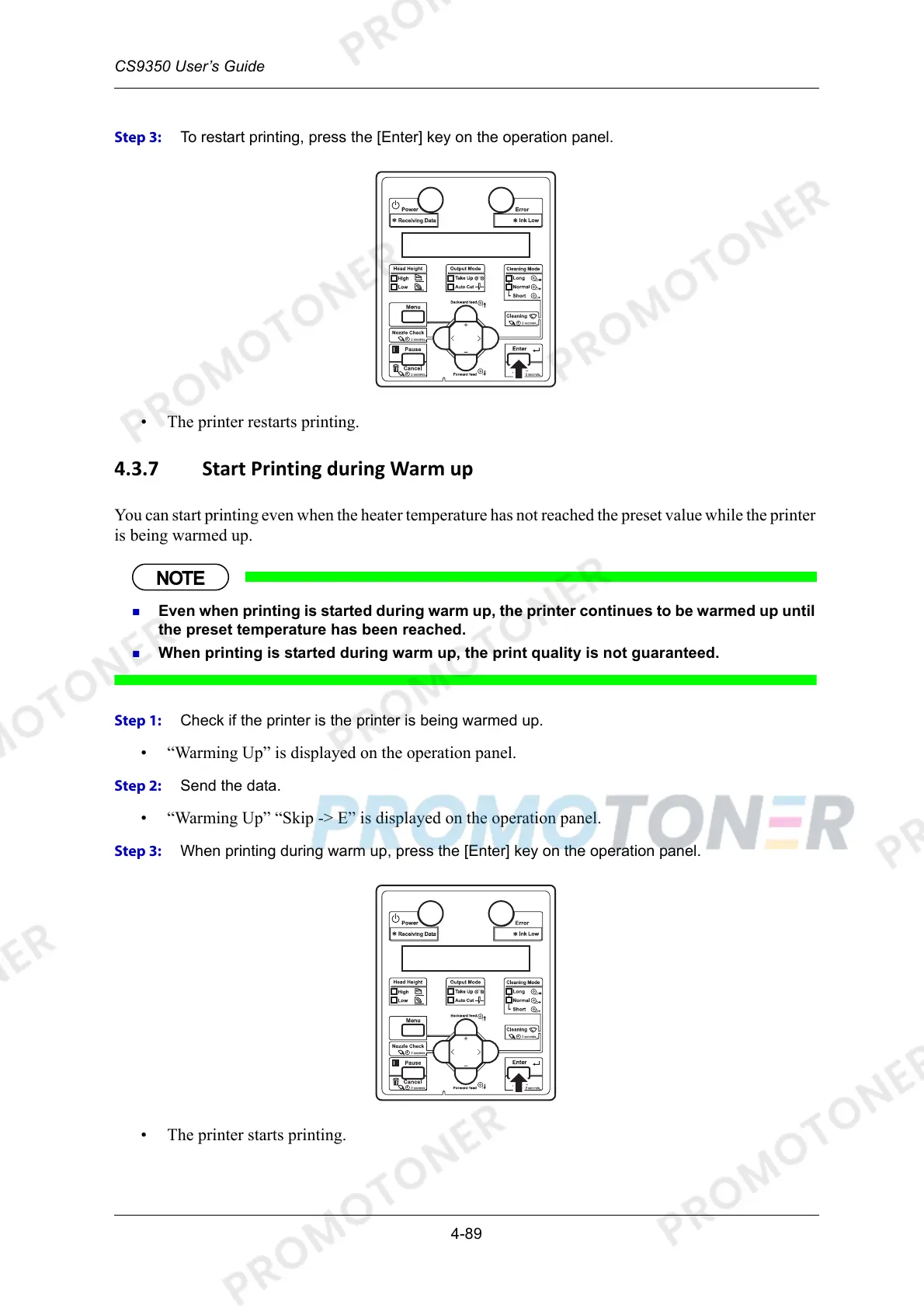 Step 3: When printing during warm up, press the [Enter] key on the operation panel.