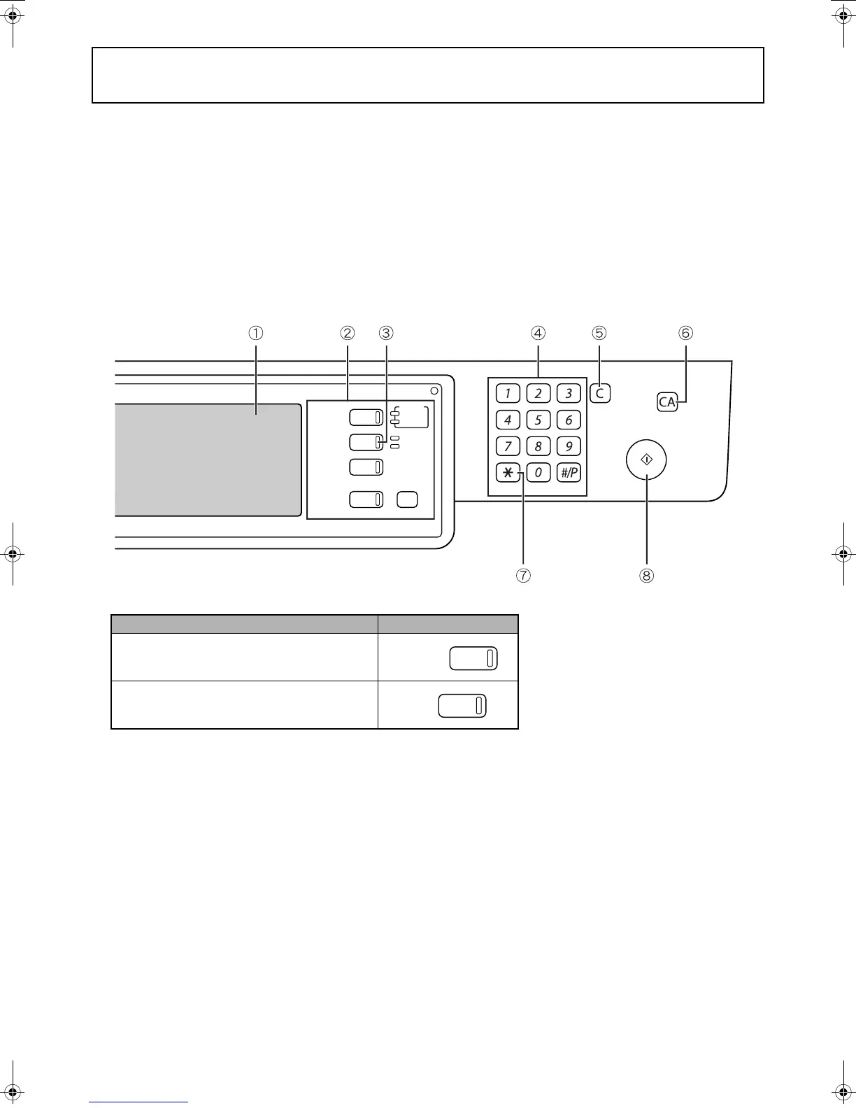 The operation panel of the im4512/im3512 is different from the panel described in the Facsimile Operation Manual.