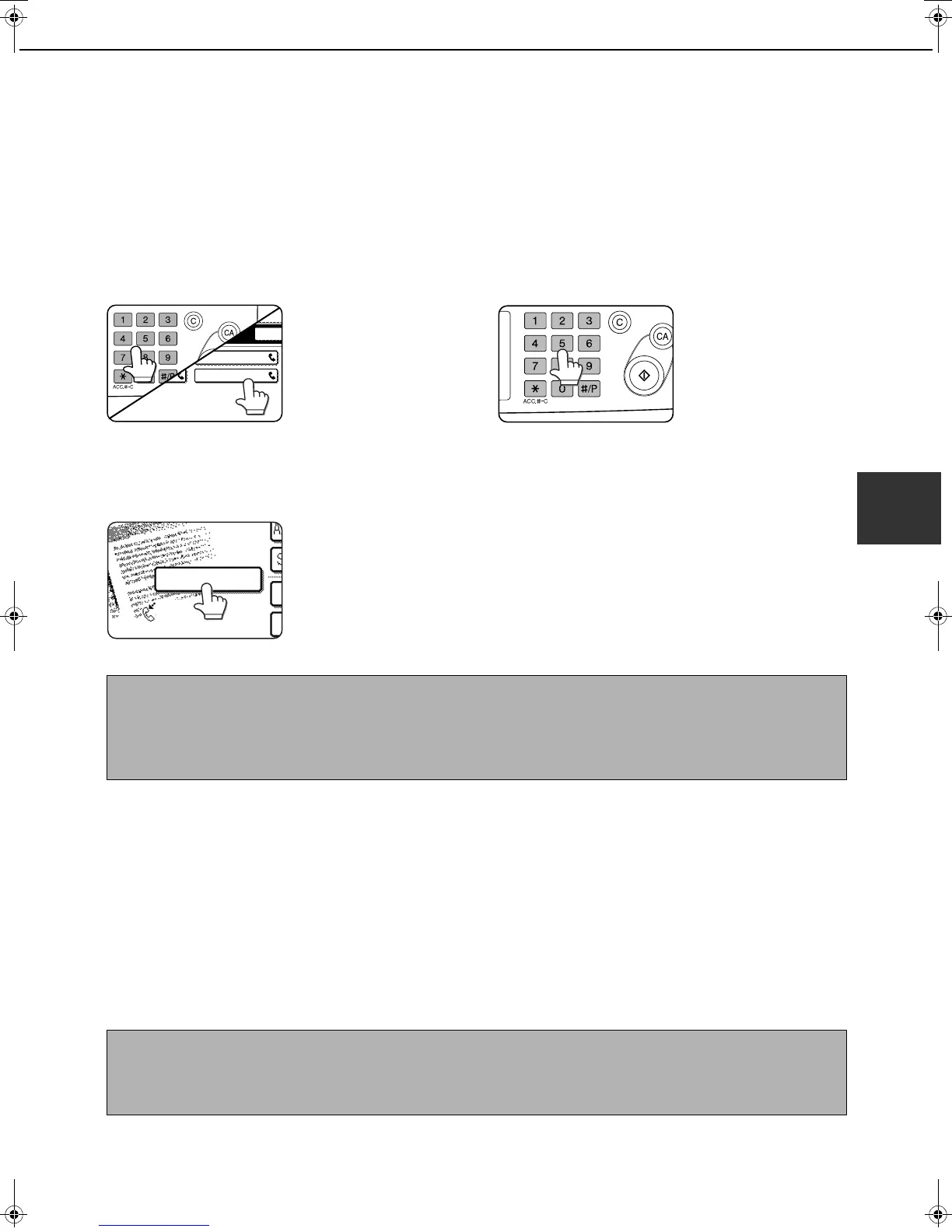 ● Manual transmission (on-hook dialing or lifting an extension phone connected to the machine) using a sub-