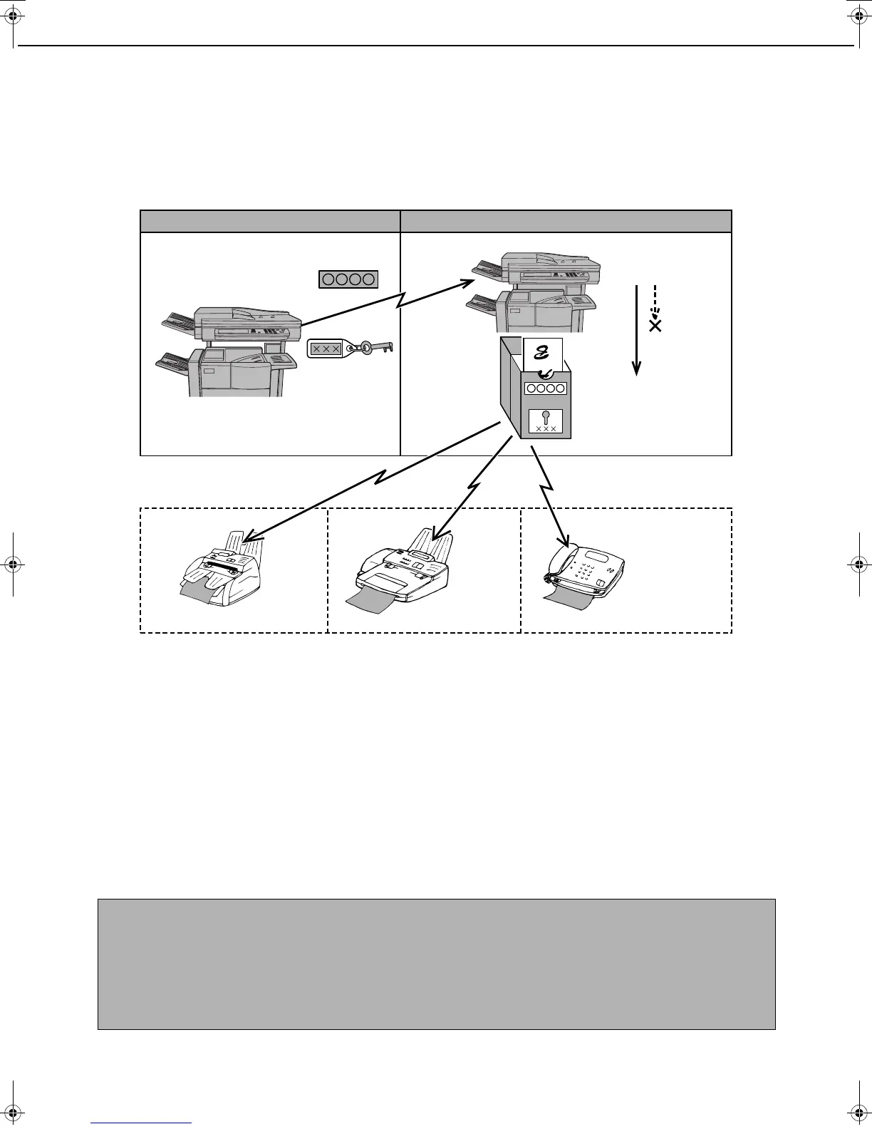 The F-Code relay broadcast function allows the machine to act as a relay machine for a broadcast transmission. The