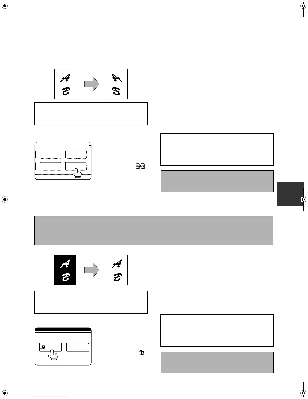 ● Originals with large black areas (which use a large amount of toner) can be printed with black/white reverse