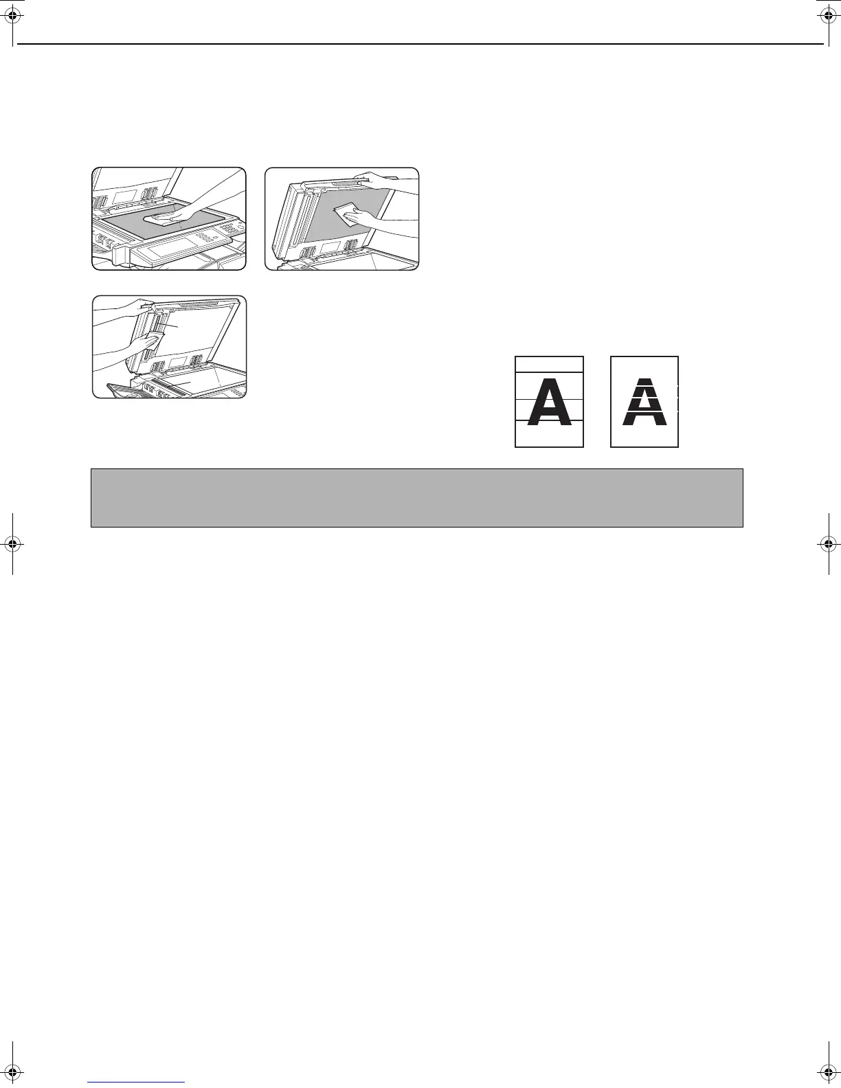 If the document glass, document cover or automatic document scanning unit have dirty spots, these spots will form