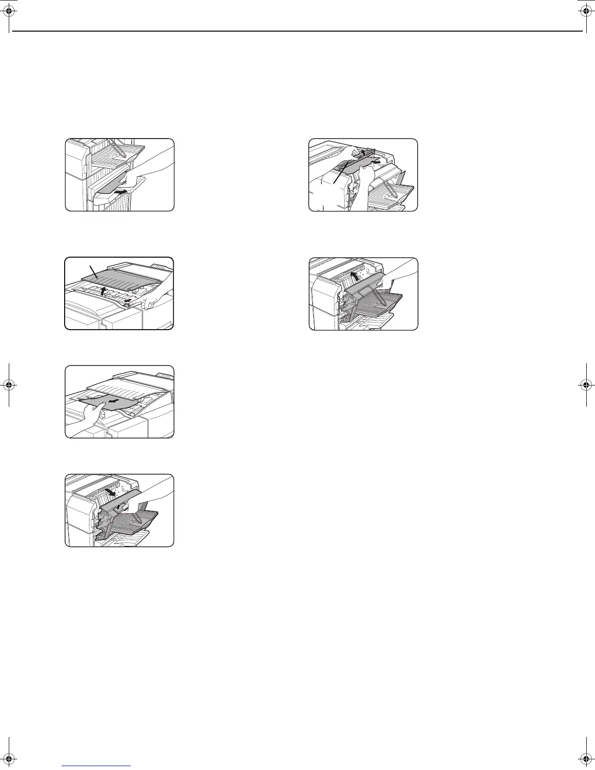 When a misfeed occurs in the finisher, remove the misfed paper following the procedure below.