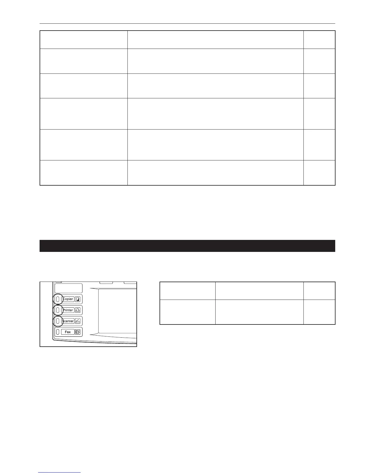 If one of the indicators to the left of the [Copier] key, the [Printer] key, or the [Scanner] key either lights orange or flashes orange, carry out the