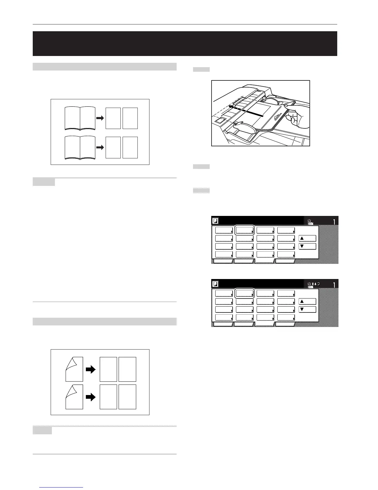 Touch the “2 sided/Separation” [“2-sided/Split”] key.