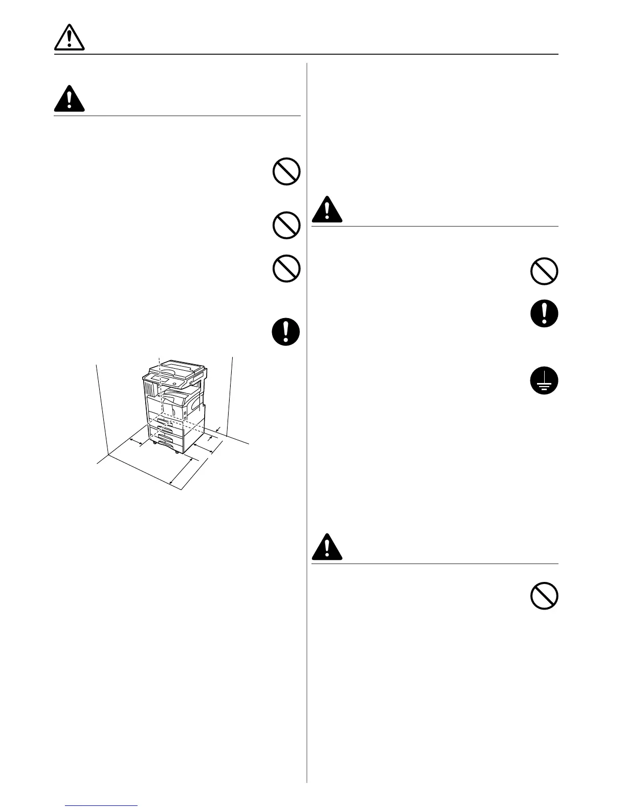 •Avoid placing the copier on or in locations which