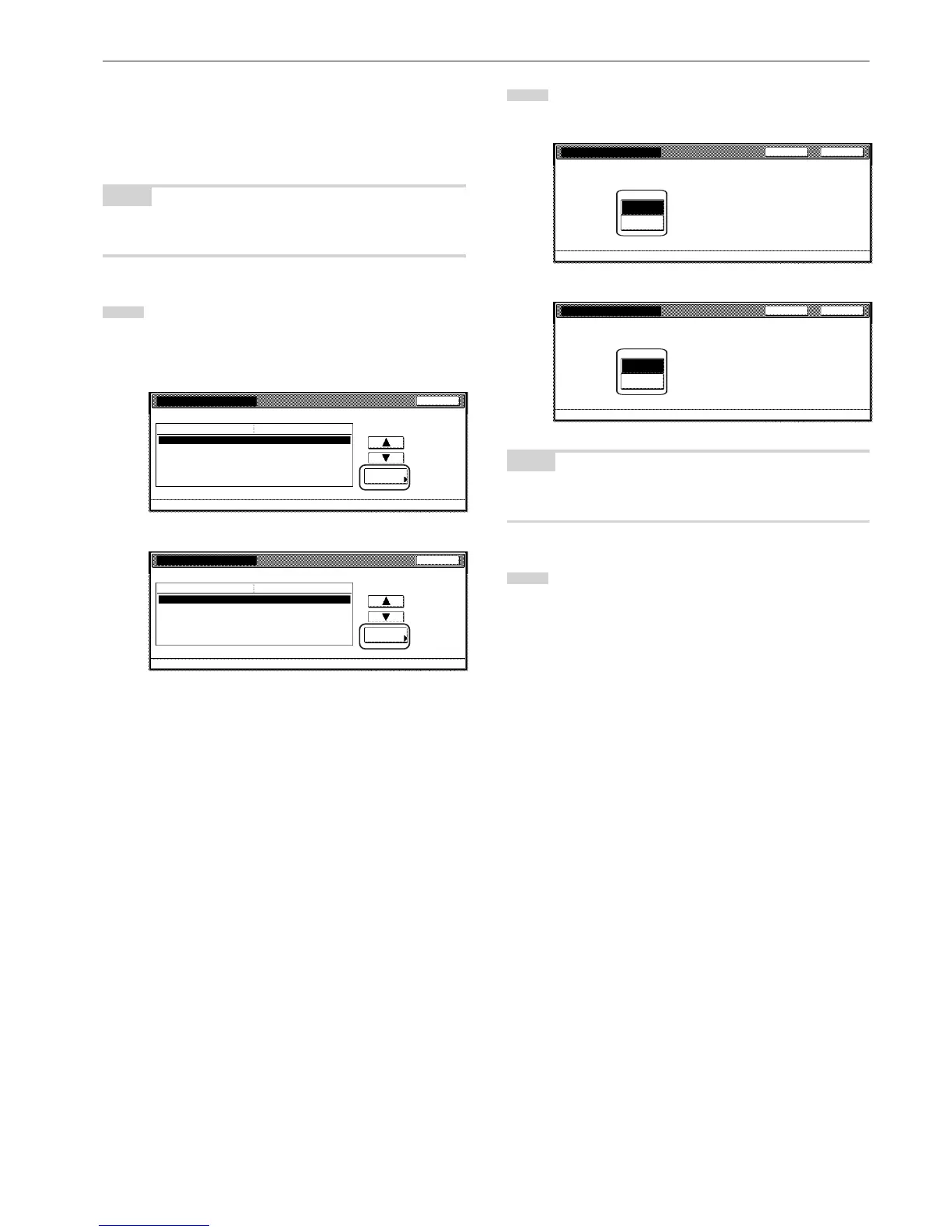“Back” key. The touch panel will return to the screen in step 1.