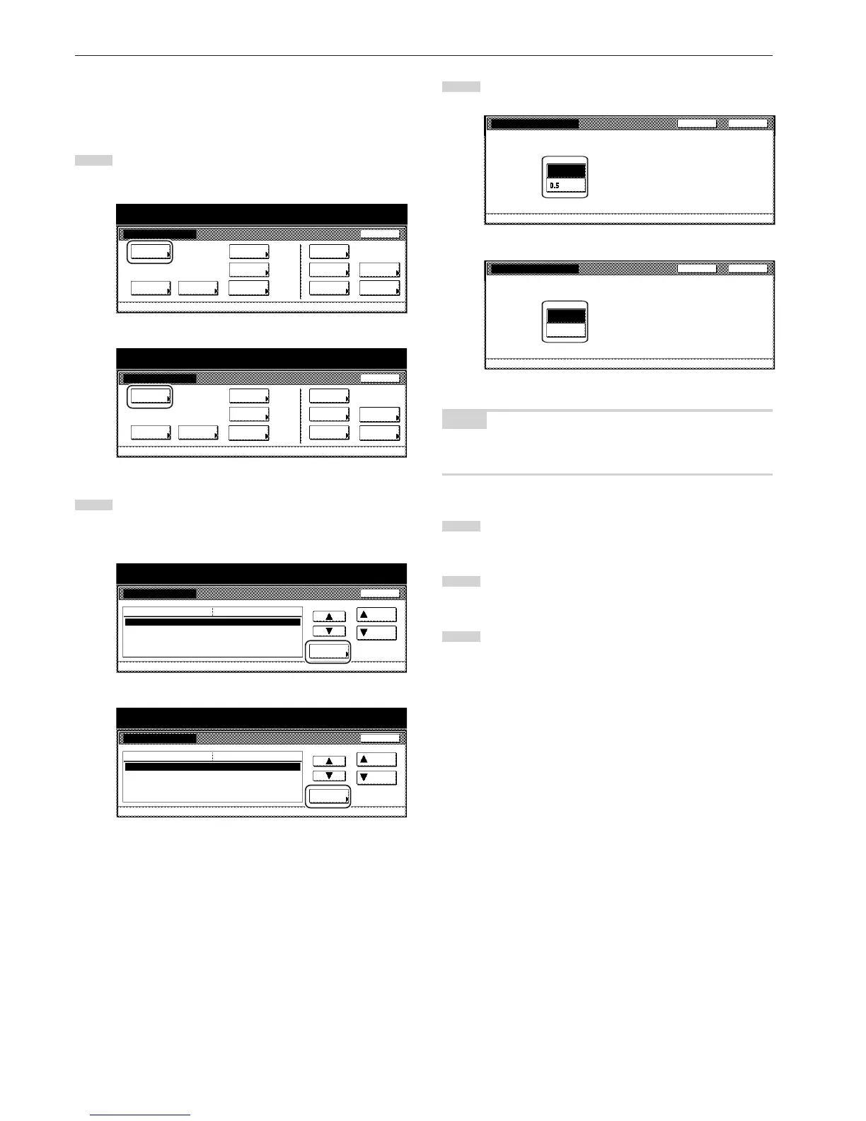 “Back” key. The touch panel will return to the screen in step 2.
