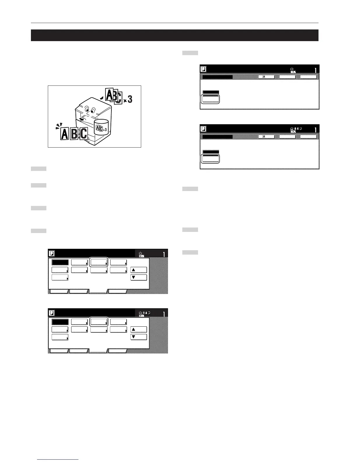 Touch the “Proof Copy” [“Test copy”] key. The “Proof Copy”