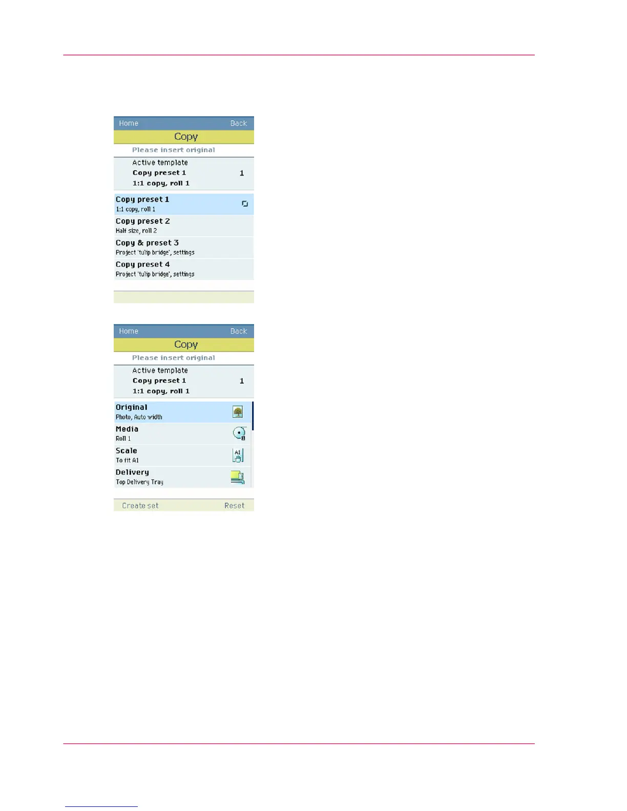 If you want to change the pre-defined settings of the selected copy template, use the