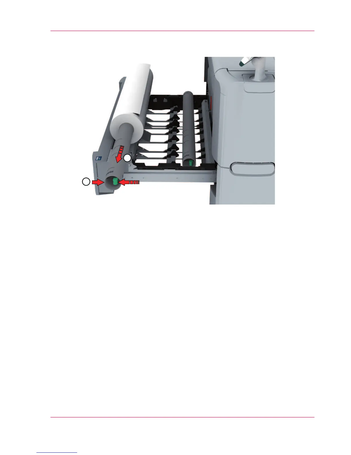 Pull the handle of the roll holder locking mechanism towards you and remove the roll