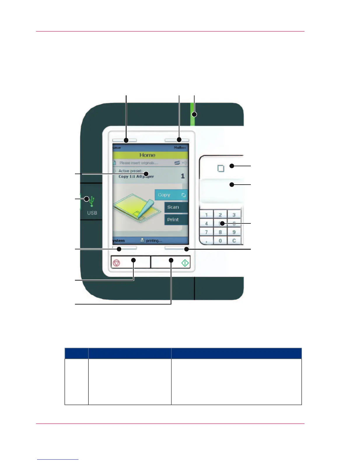 operator to start a scan job, a print job or a