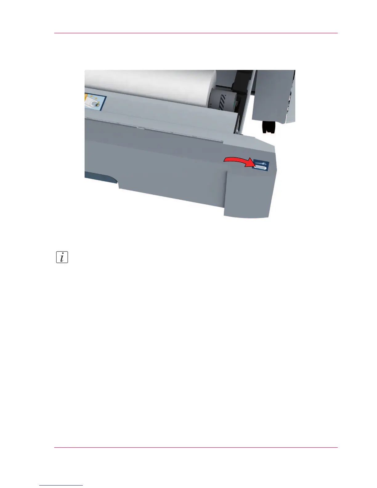 If necessary, press the clean cut button to trim a strip of the new media roll. Press once