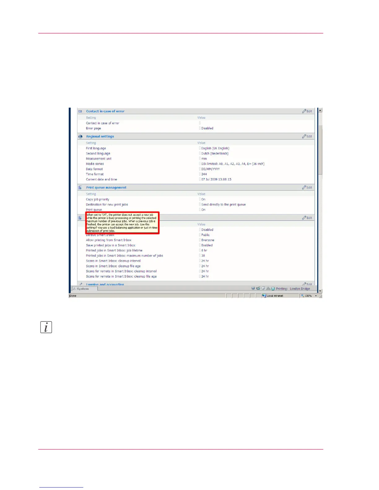 shows, for example, the tooltip information of the 'Print queue' setting.