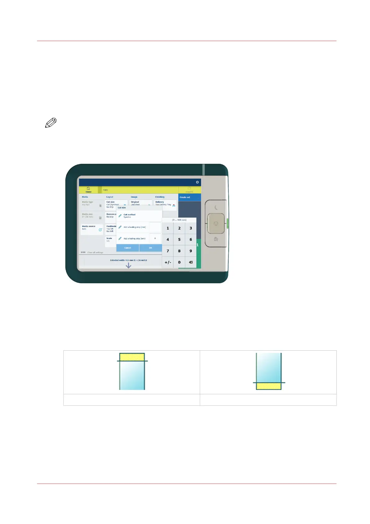 Use [Cut size] to copy an original without a strip and add a strip to the copy. You can add a strip
