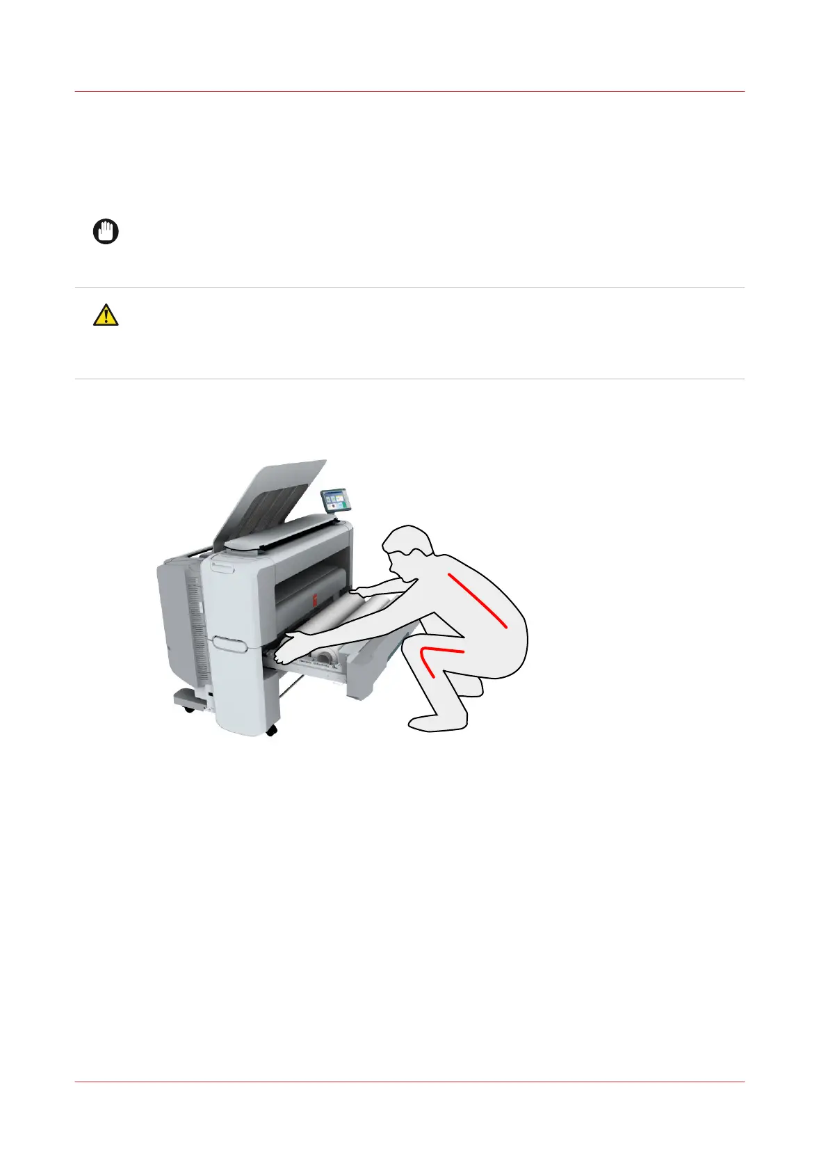 • If you want to remove an A0 media roll from position 2, make sure to bend your knees, as