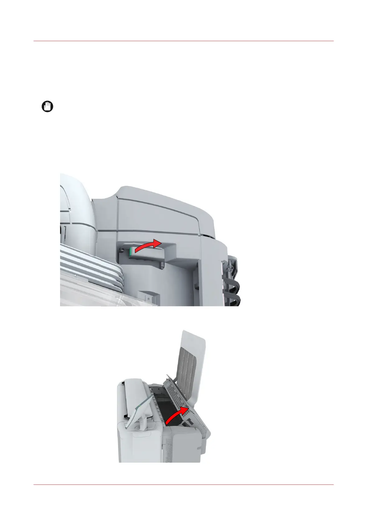 During normal use, the fuser has to remain closed. Only open it to remove the media after a
