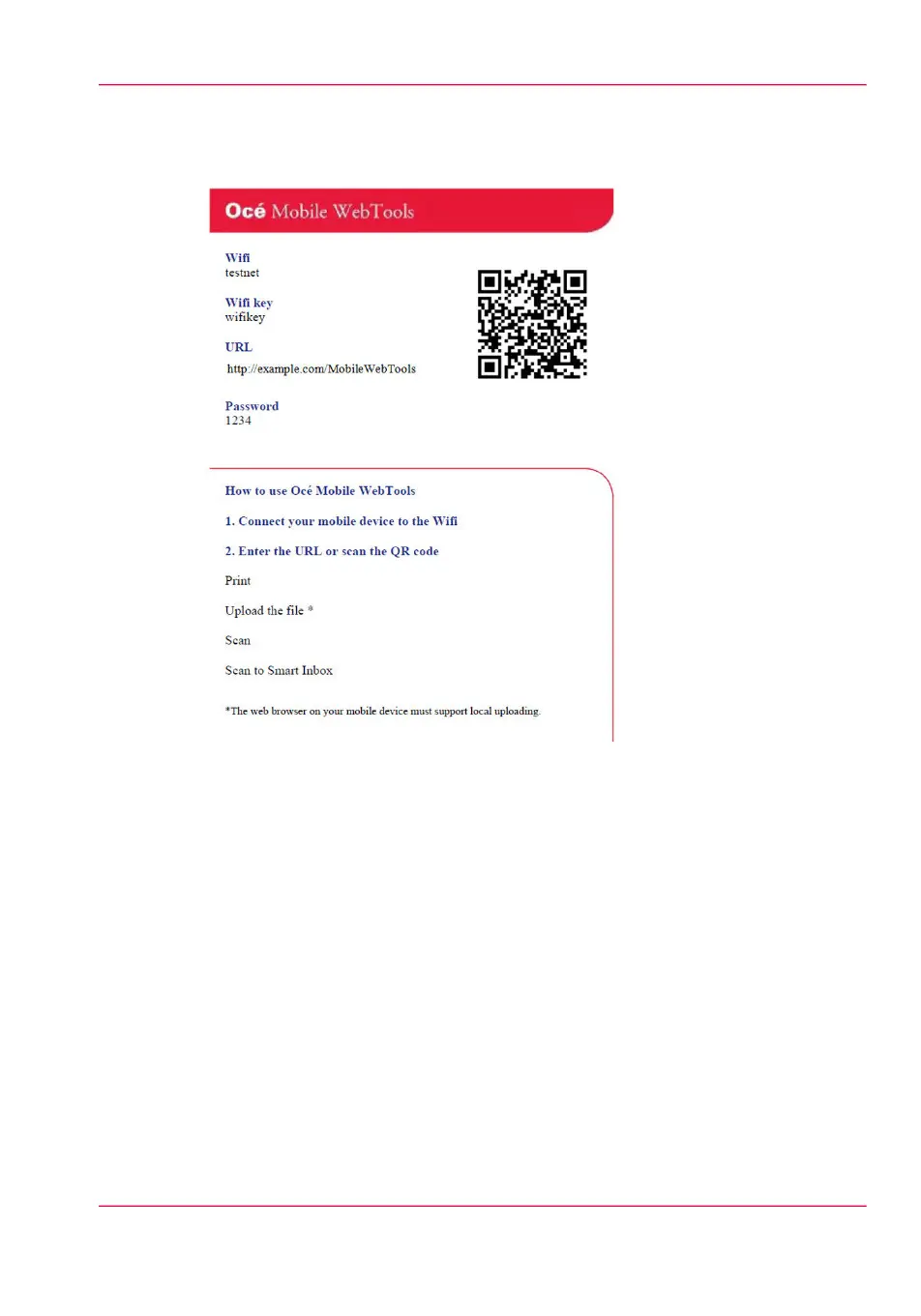 The URL of your printer is also displayed so you can also access Océ Mobile WebTools