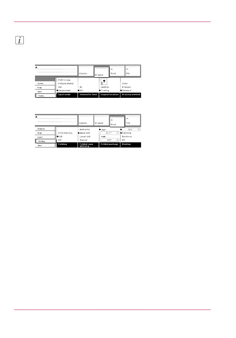Press the ‘Drawing method’ function key to select ‘Standard’, ‘Ericsson’ or ‘Afnor’ fold.