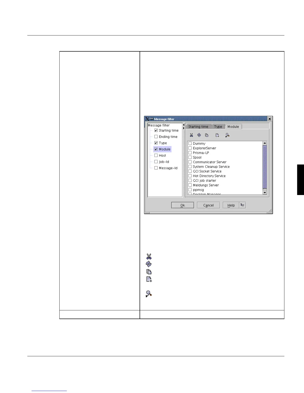 in the filter (available only for 'Module' and 'Message-