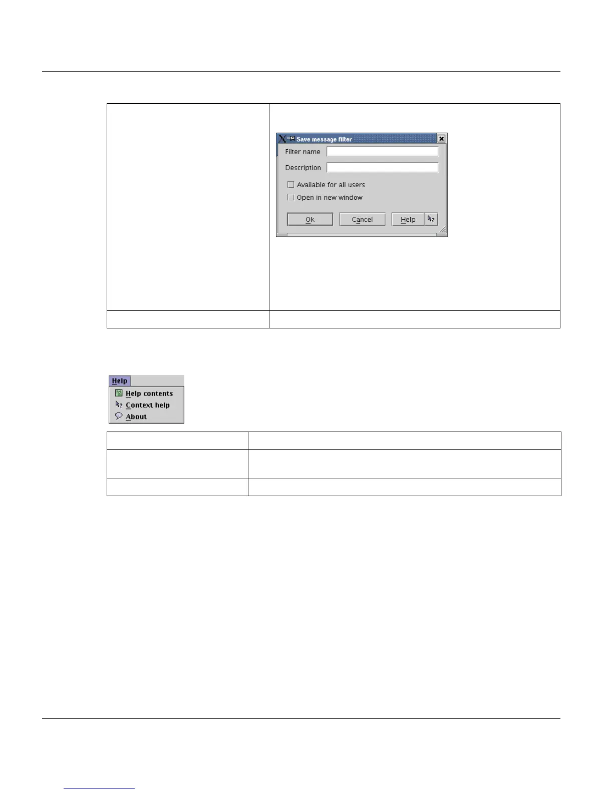 Help contents Displays the related help topic fpr the messages window.