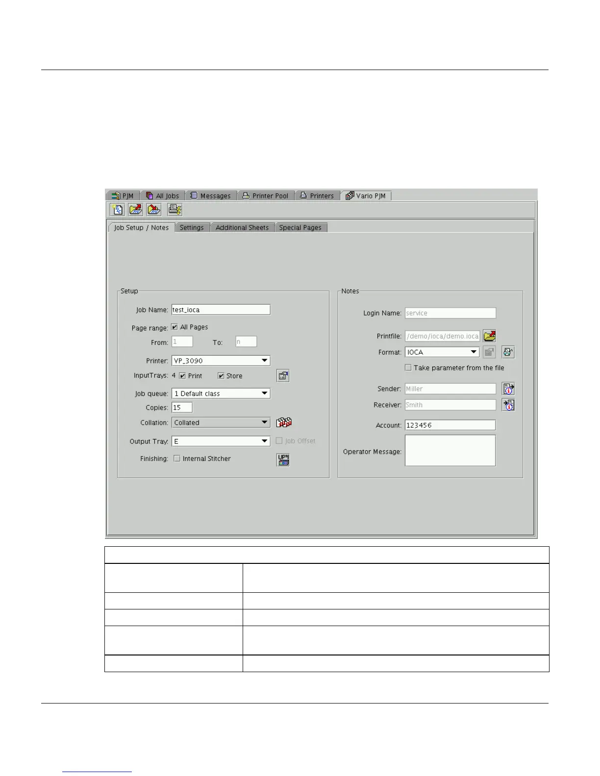 In this dialog you define the basic settings for the job, the printer and the postprocessing.