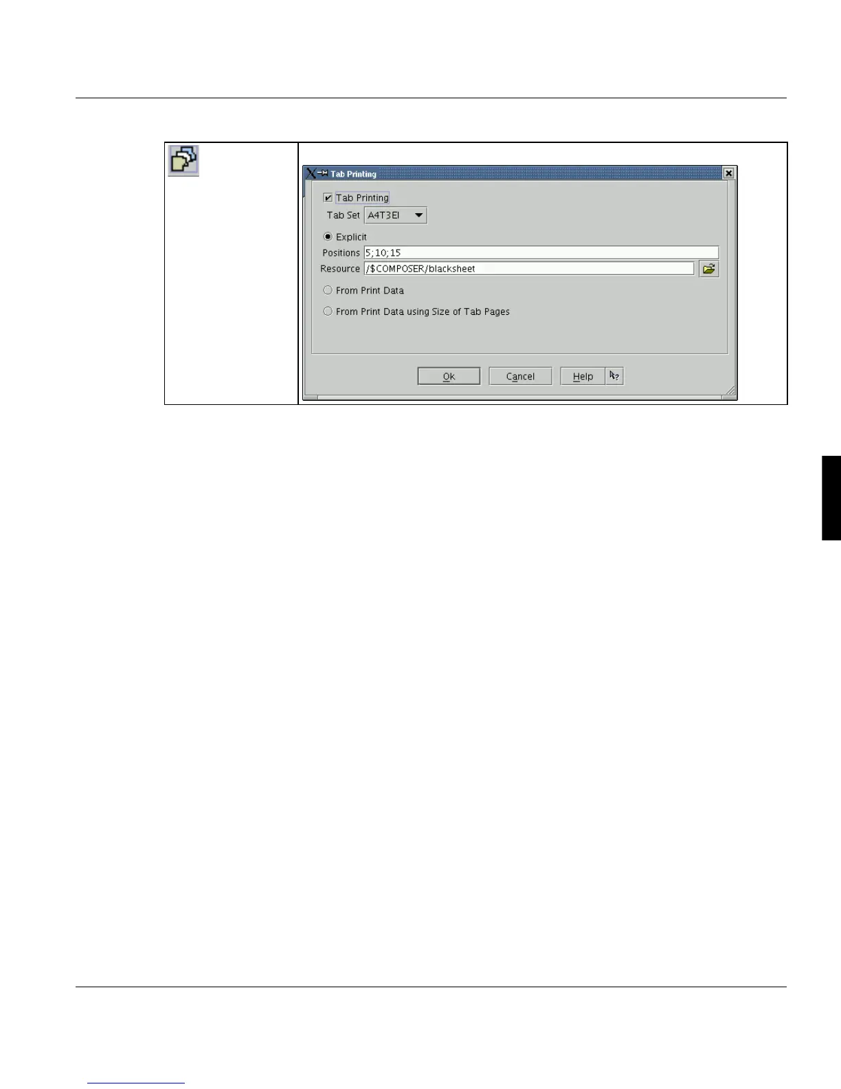 ’Tab Printing’ Opens a dialog, which allows you to change the parameters for tab printing: