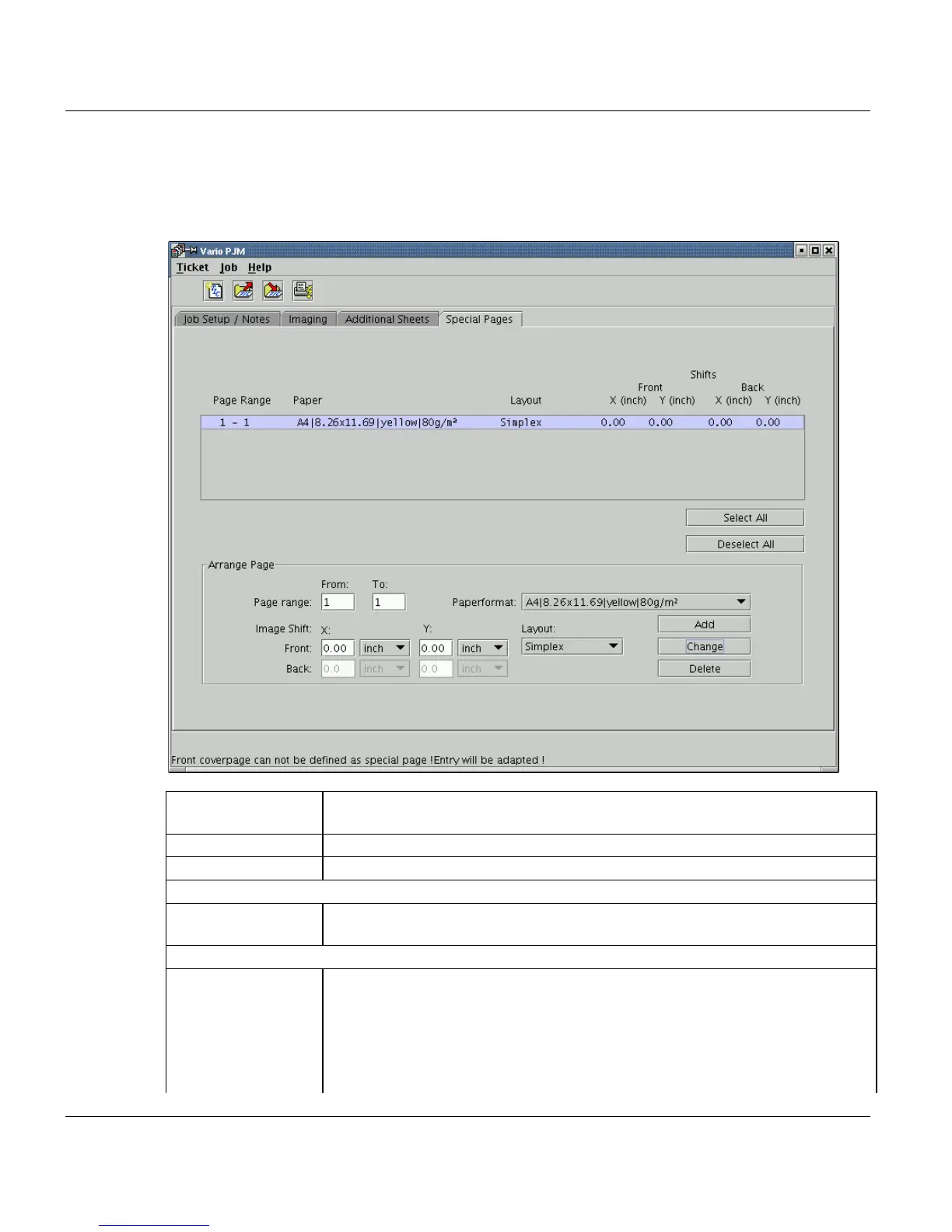 On this tab you define special pages for the print job. This function is only valid for the job-