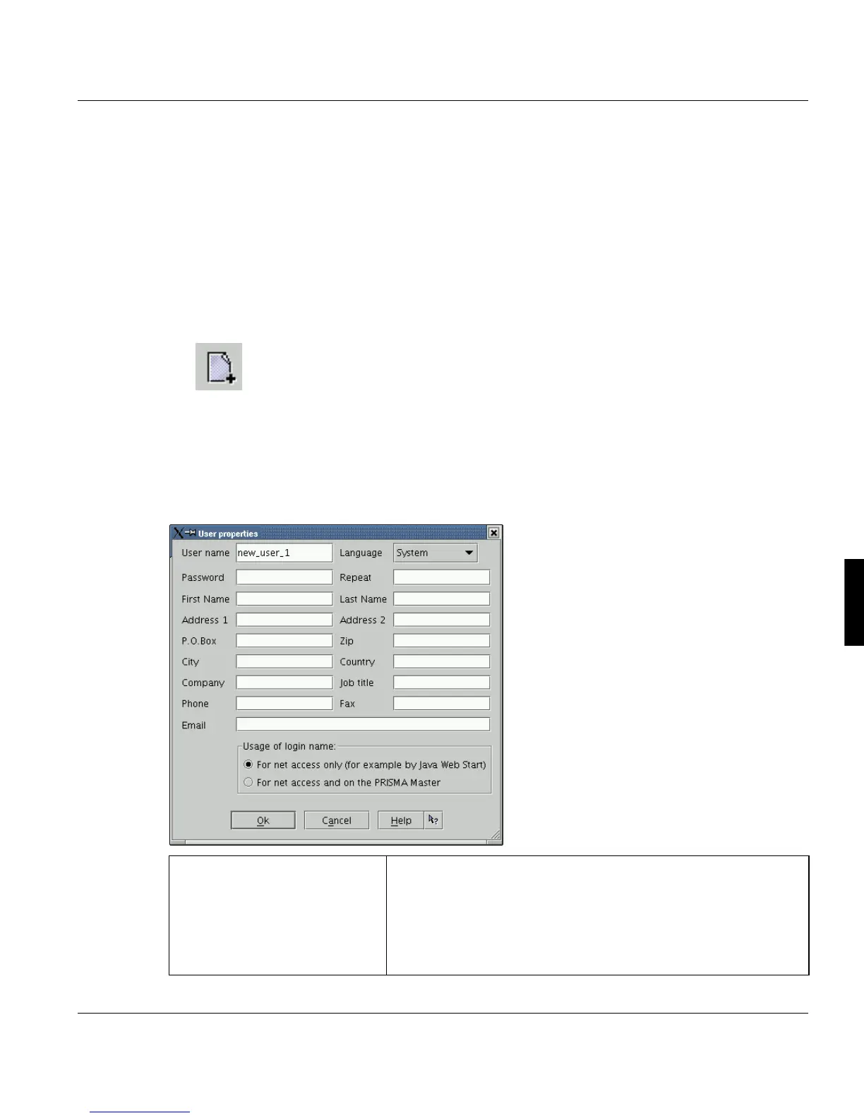 If you create a new user, the following dialog is opened: