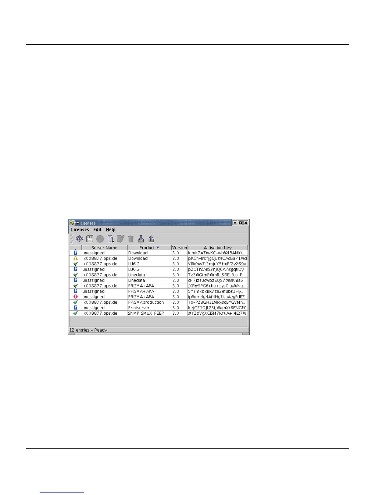 tion’ and double-click on Licenses. A applet is opened, containing a menu bar, a toolbar and