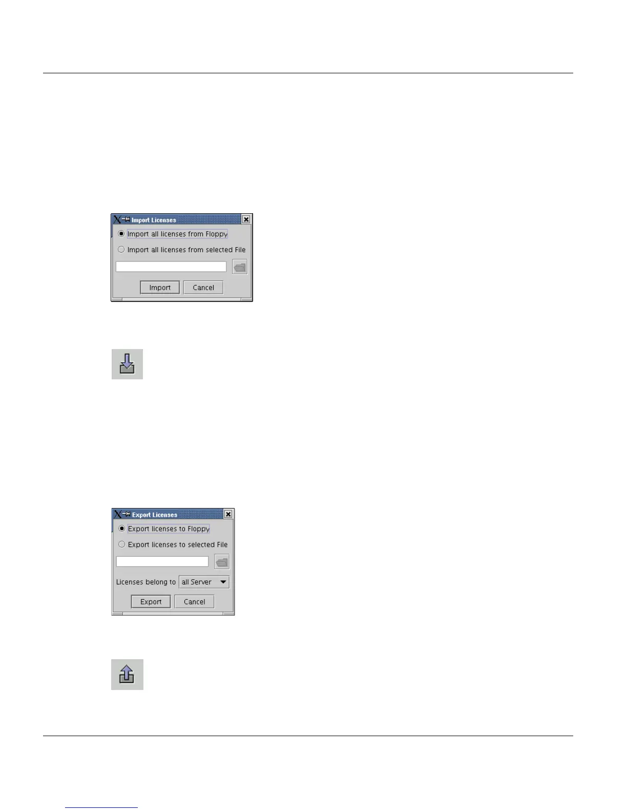 • To import the licenses from Floppy, select ”Import all licenses from Floppy”, insert the