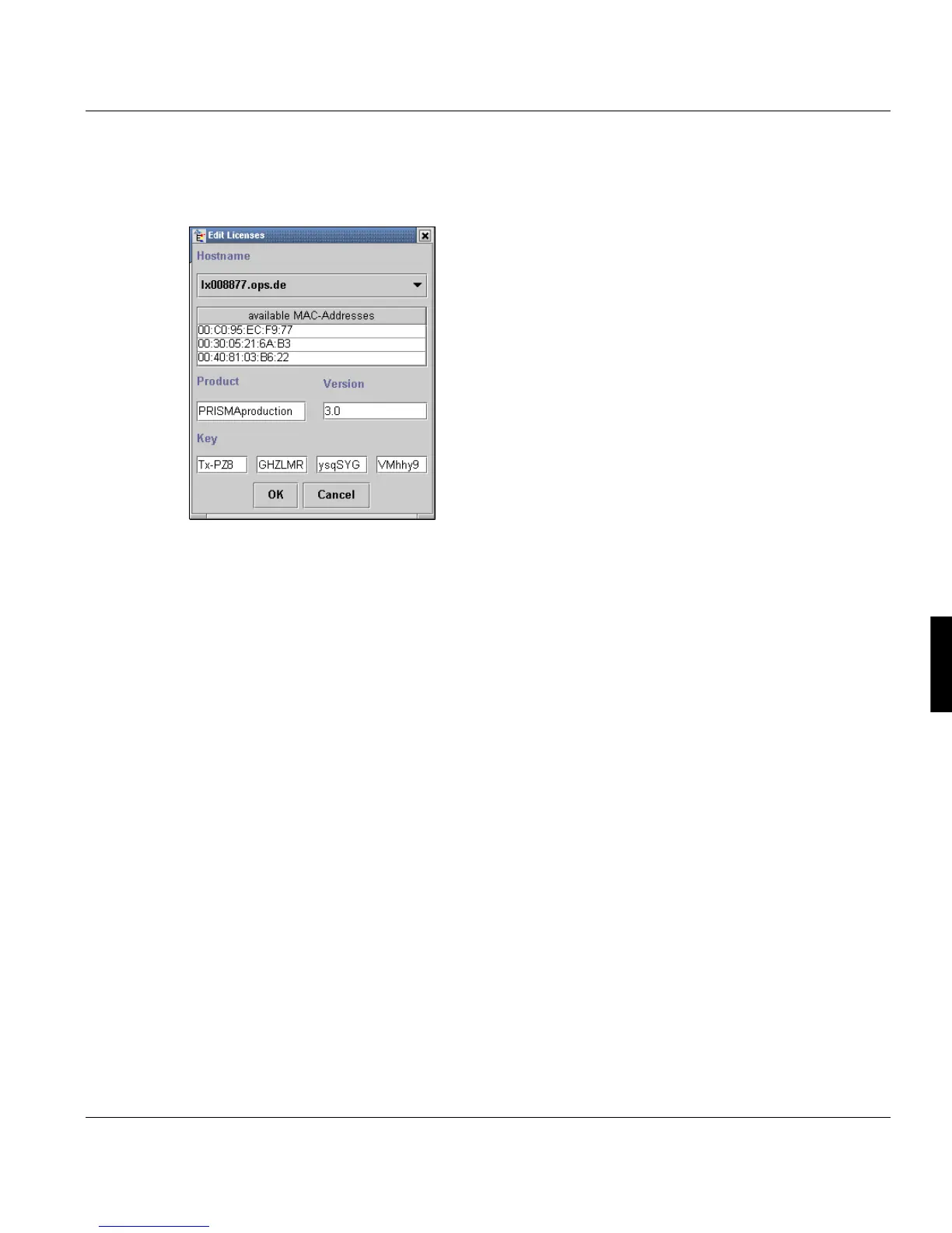 Once you have selected an entry, the ‘License Manager' opens a window in which you can