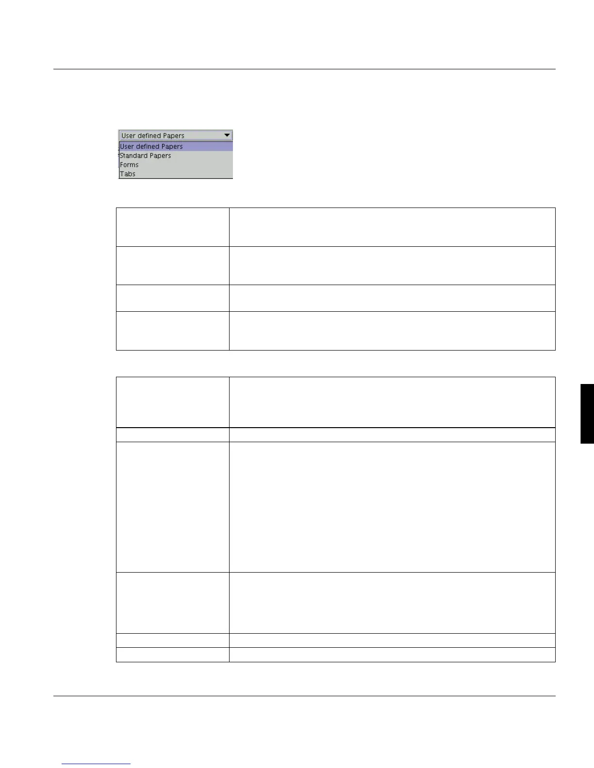 With the entries 'Standard Papers' and 'User Defined Papers' you can chose between the