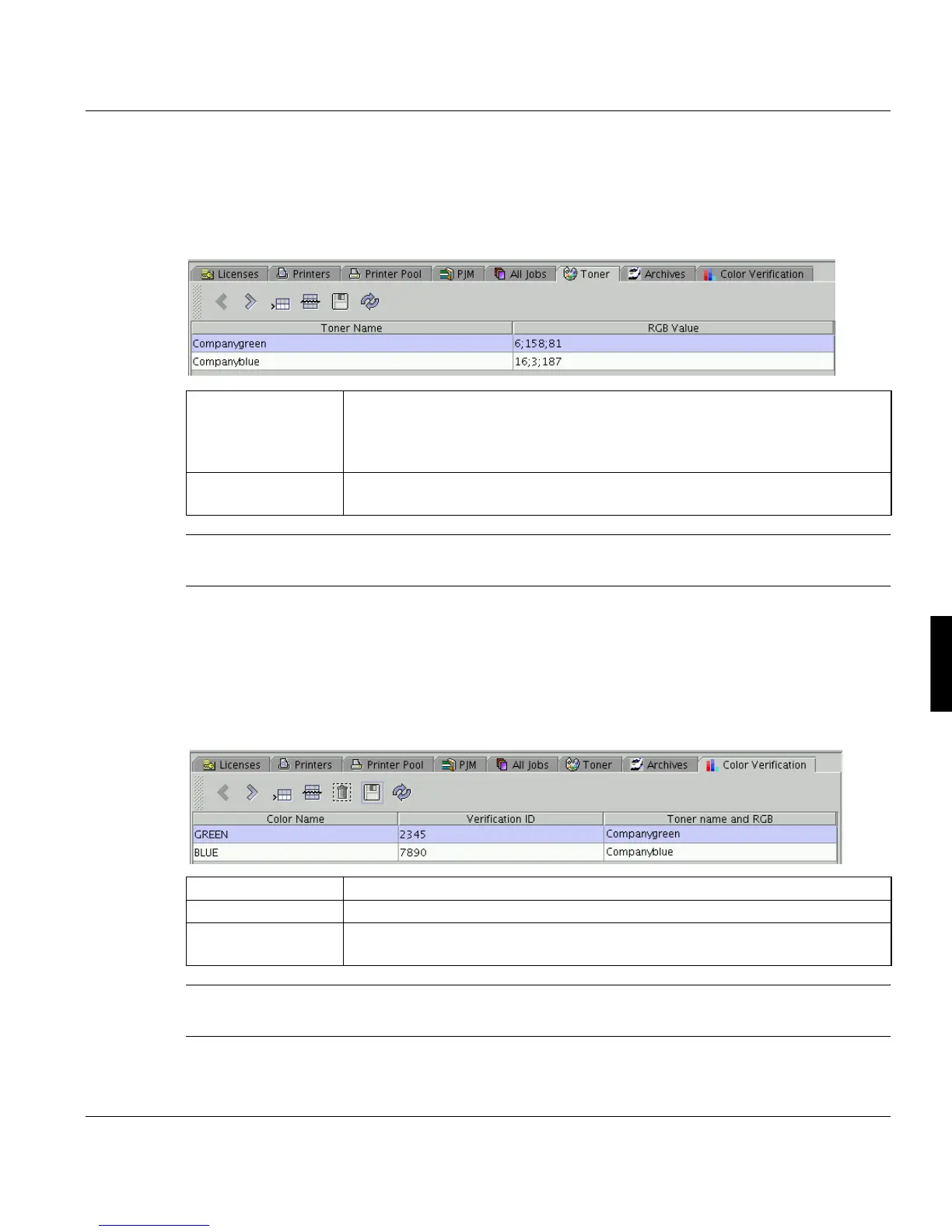Note: For a complete Workflow for the definition of colors in a print job see ’Color Toner
