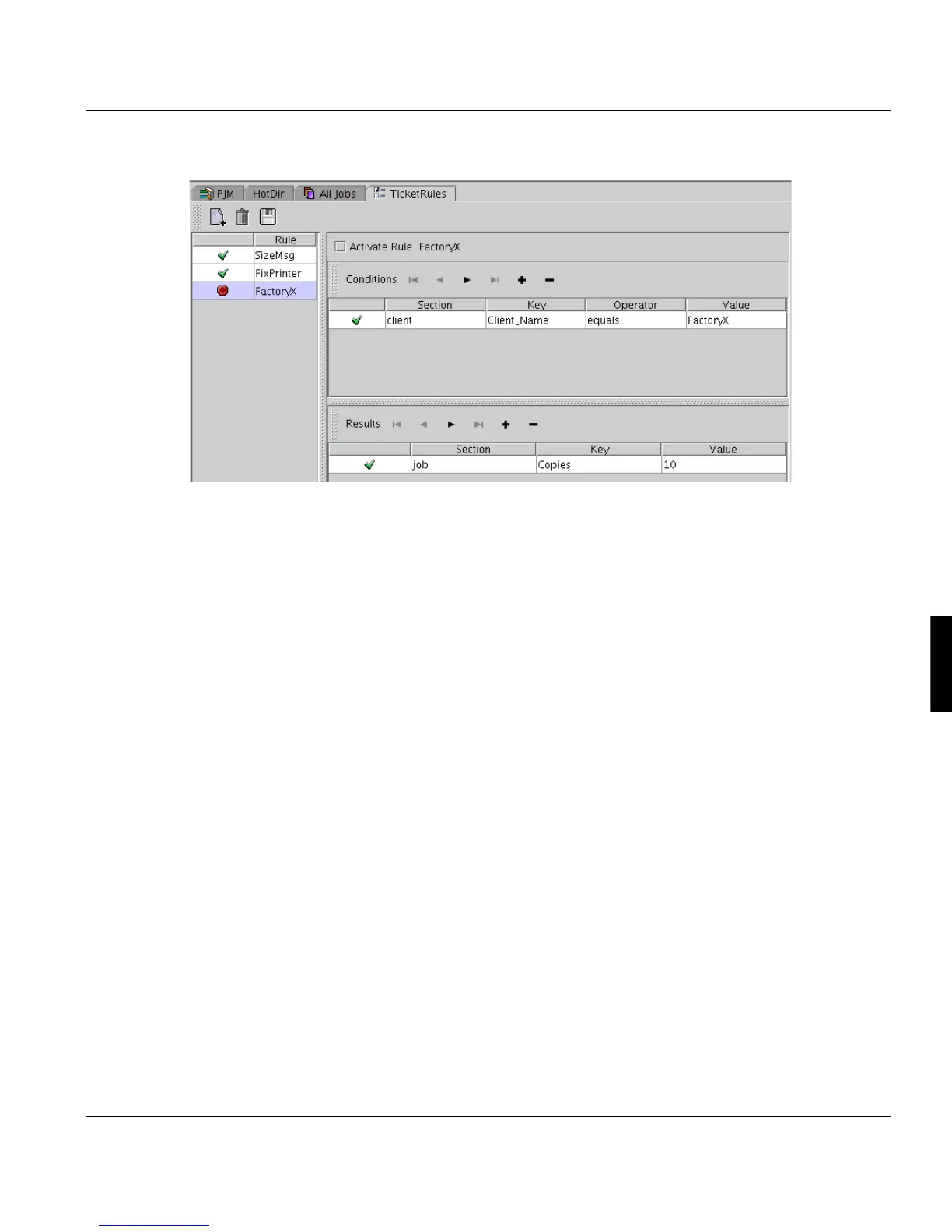 This rule prints 10 copies of every job of the customer FactoryX.