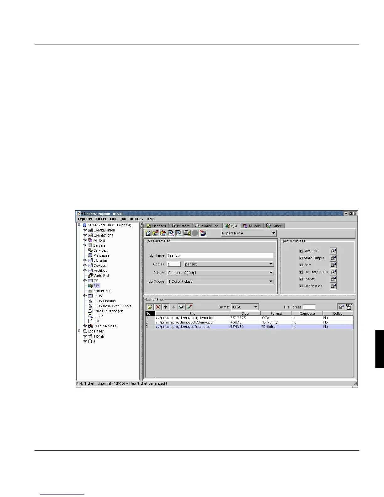 •the menu bar (menus ’Ticket’, ’Edit’, ’Job’, ’Server’, ’Utilities’ and ’Help’)