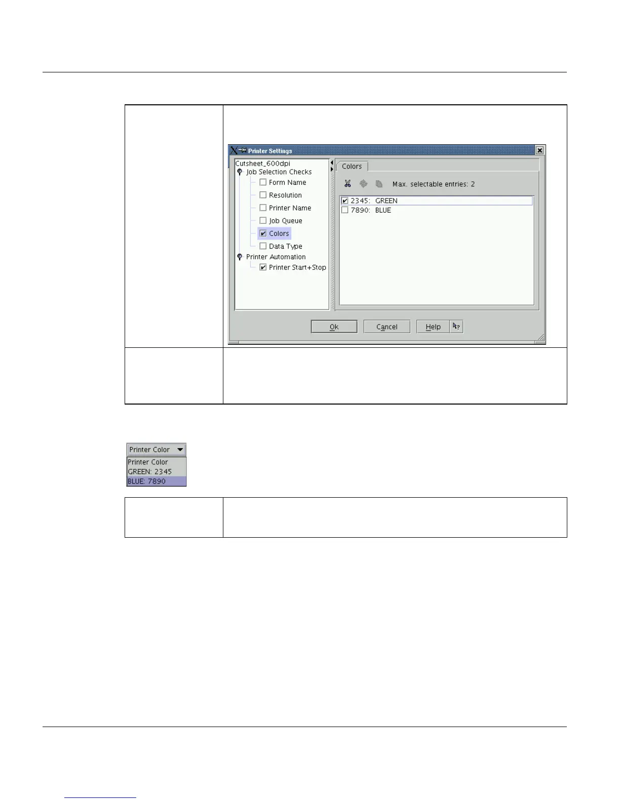 ’Printer Color’ The color allocations configured in ’Configuration’ -> ’Printers’ -> ’Colors’