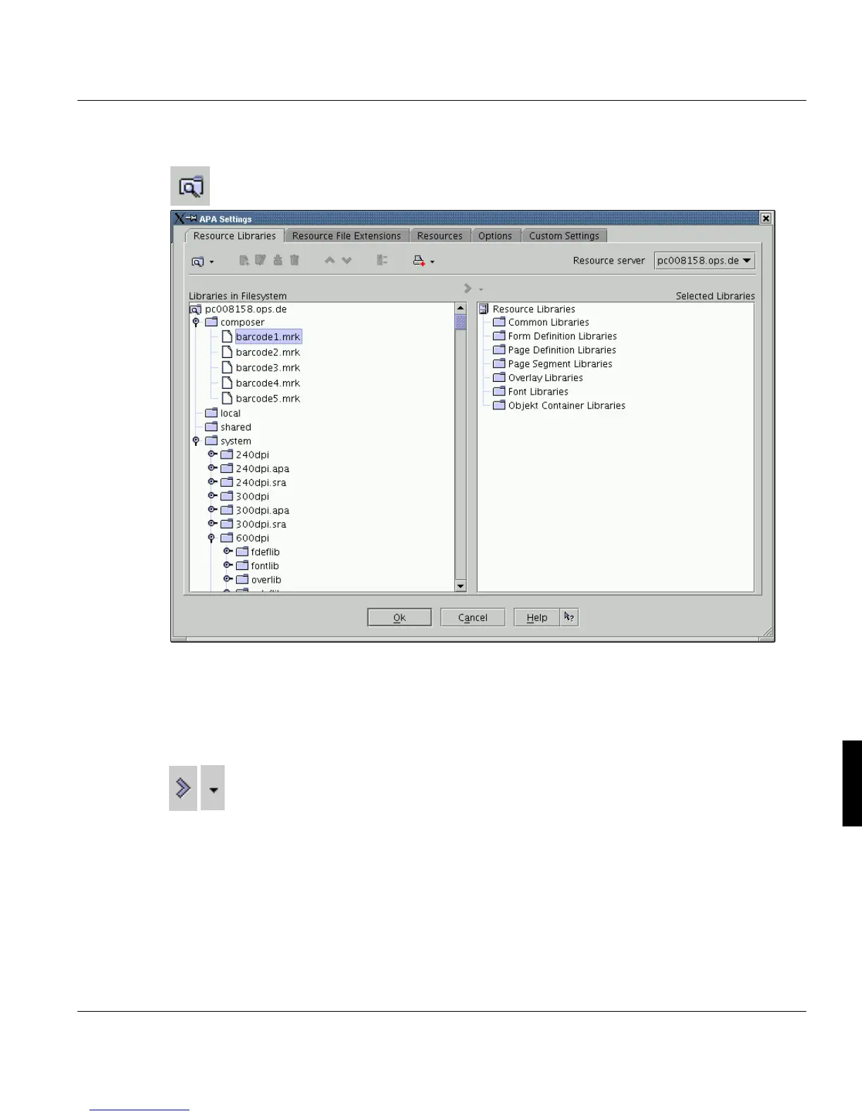 To select a library, mark one or more enrties in left tree and press the transfer button. De-