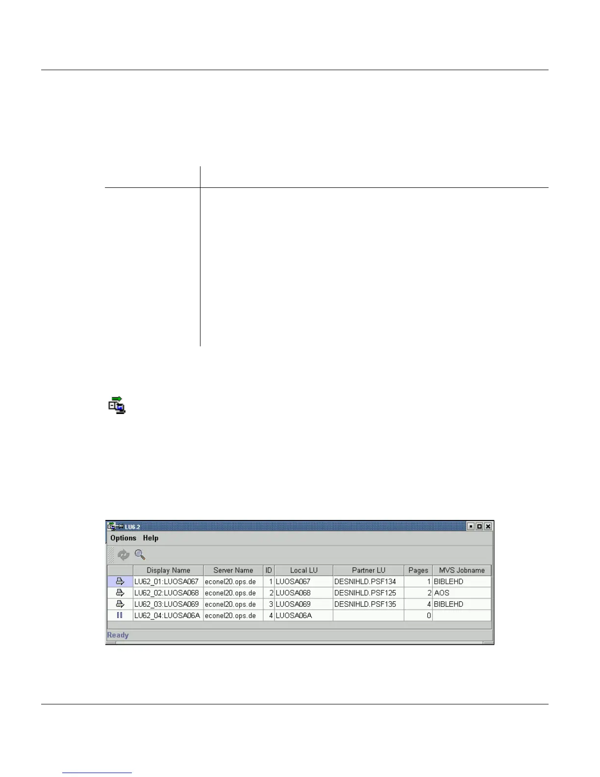 An applet is opened, containing a menu bar, a toolbar and all defined LU6.2 printers in your