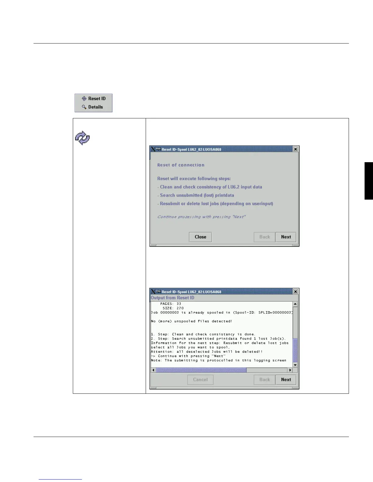 ’Reset ID’ Starts a procedure for the selected LU to check and repair the ID spool.