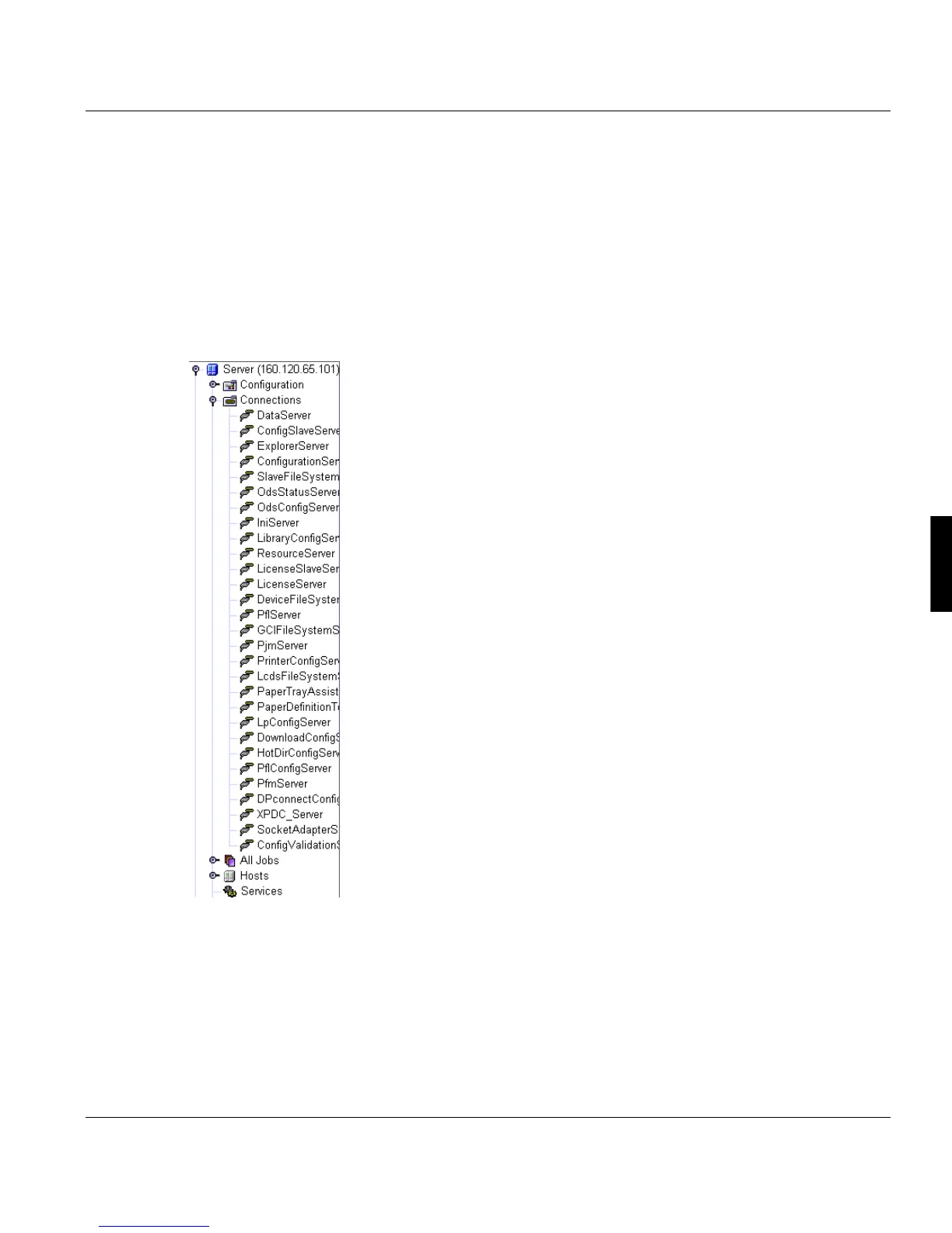 Clicking the Connections node in the PRISMA Eplorer tree view displays all the Java serv-