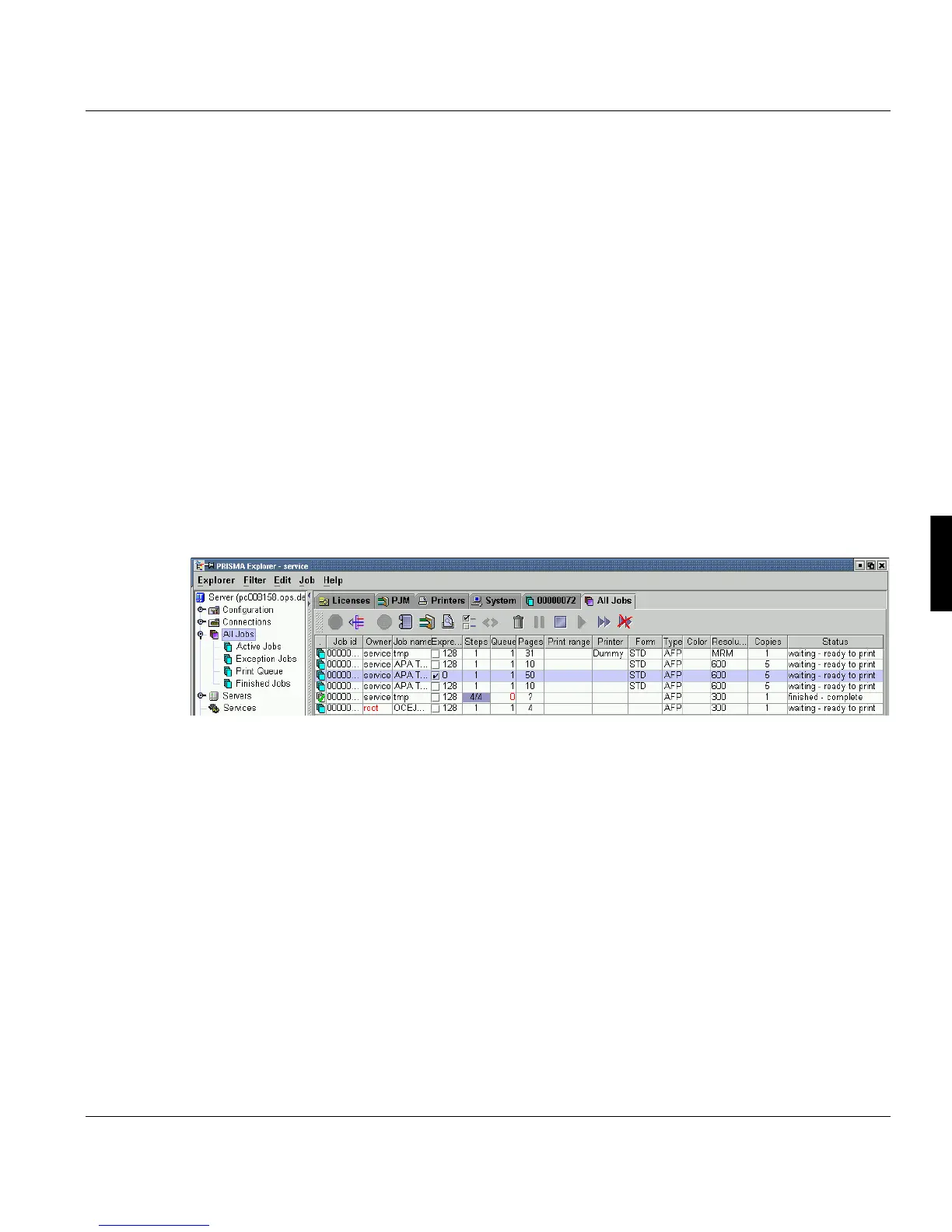 • Print Queue: all jobs whose state has something to do with printing. These states are: