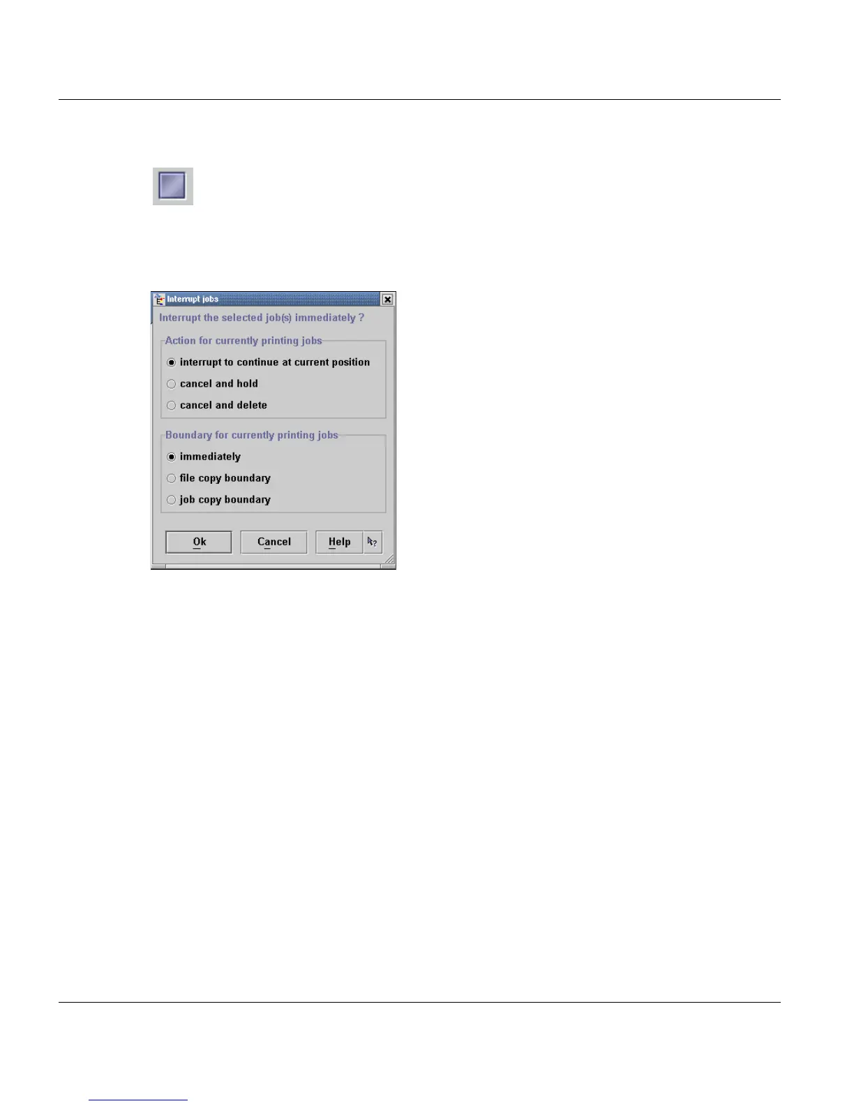 This dialog appeares, if a job is to be interrupted in the ’processing-printing’ state. It then