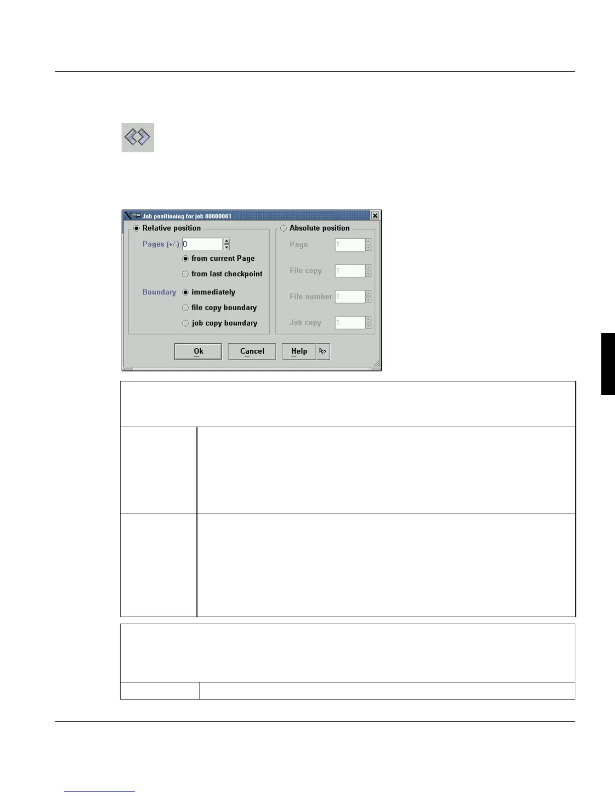 ’Pages (+/-)’ According to the indicated page numbers in this text field the job is positioned for-