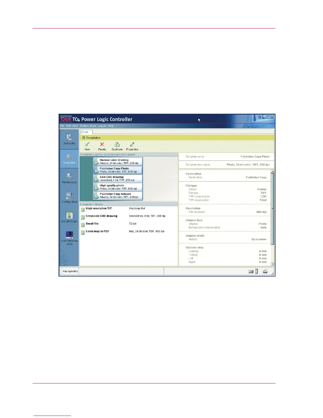 operator panel' and the 'Template Library'.