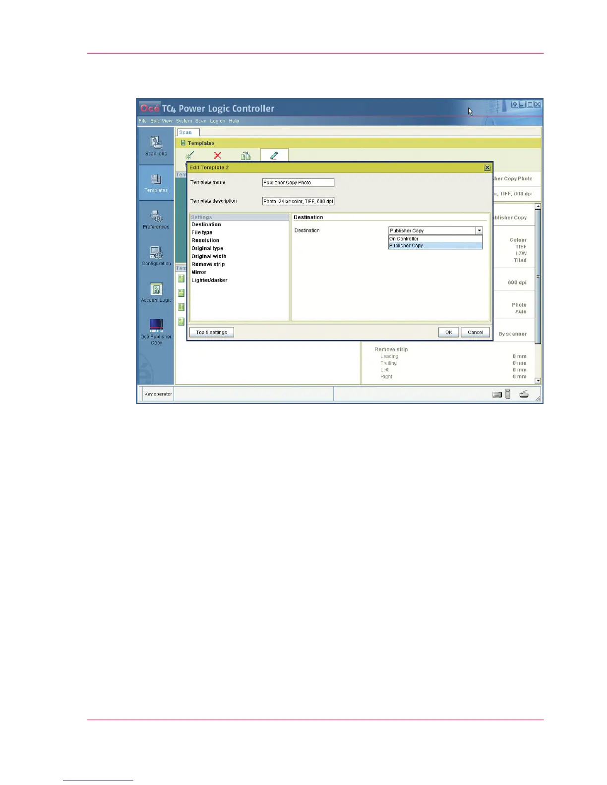operator panel, the existing scan template is immediately replaced by the new Publisher