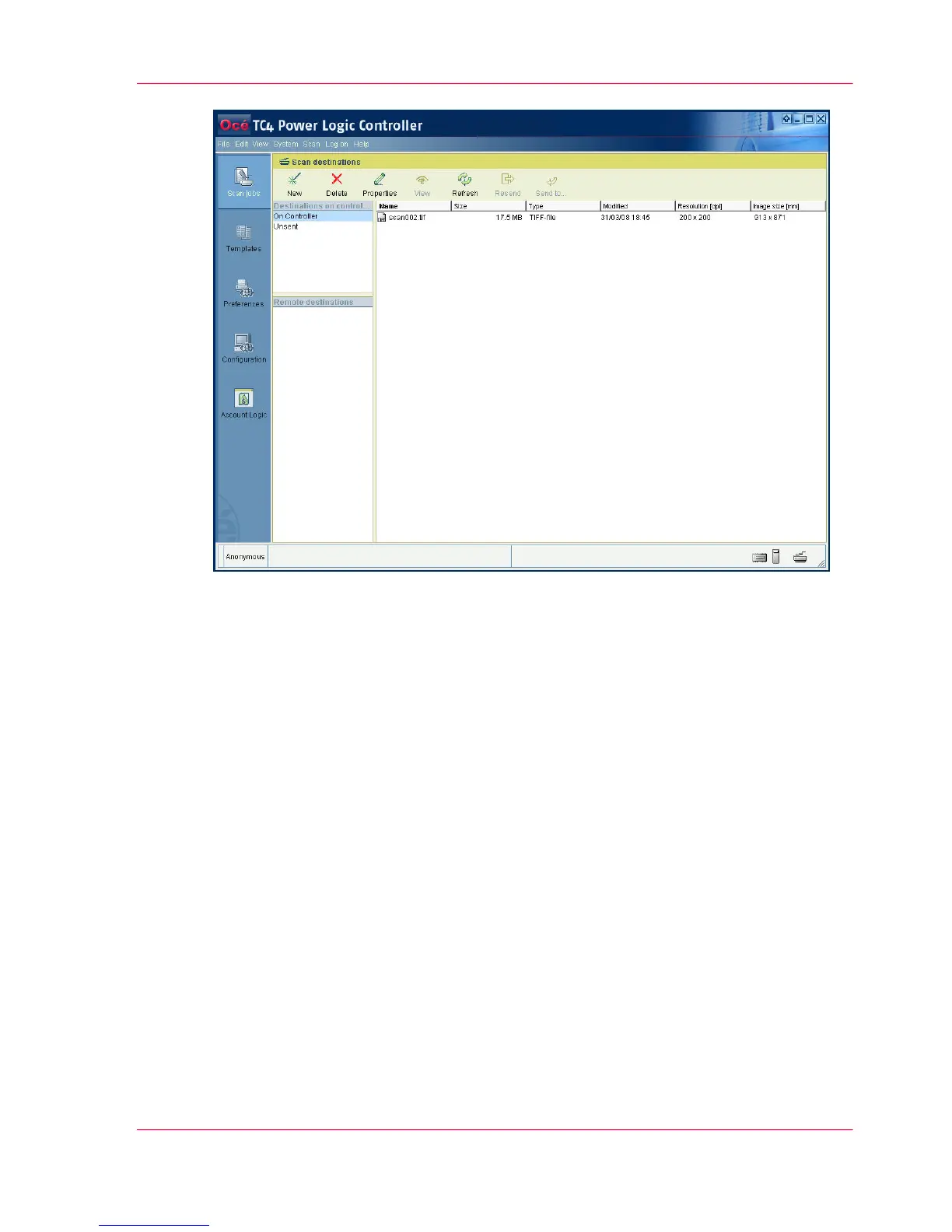 on the controller. The remote scan destinations area displays the remote destinations that