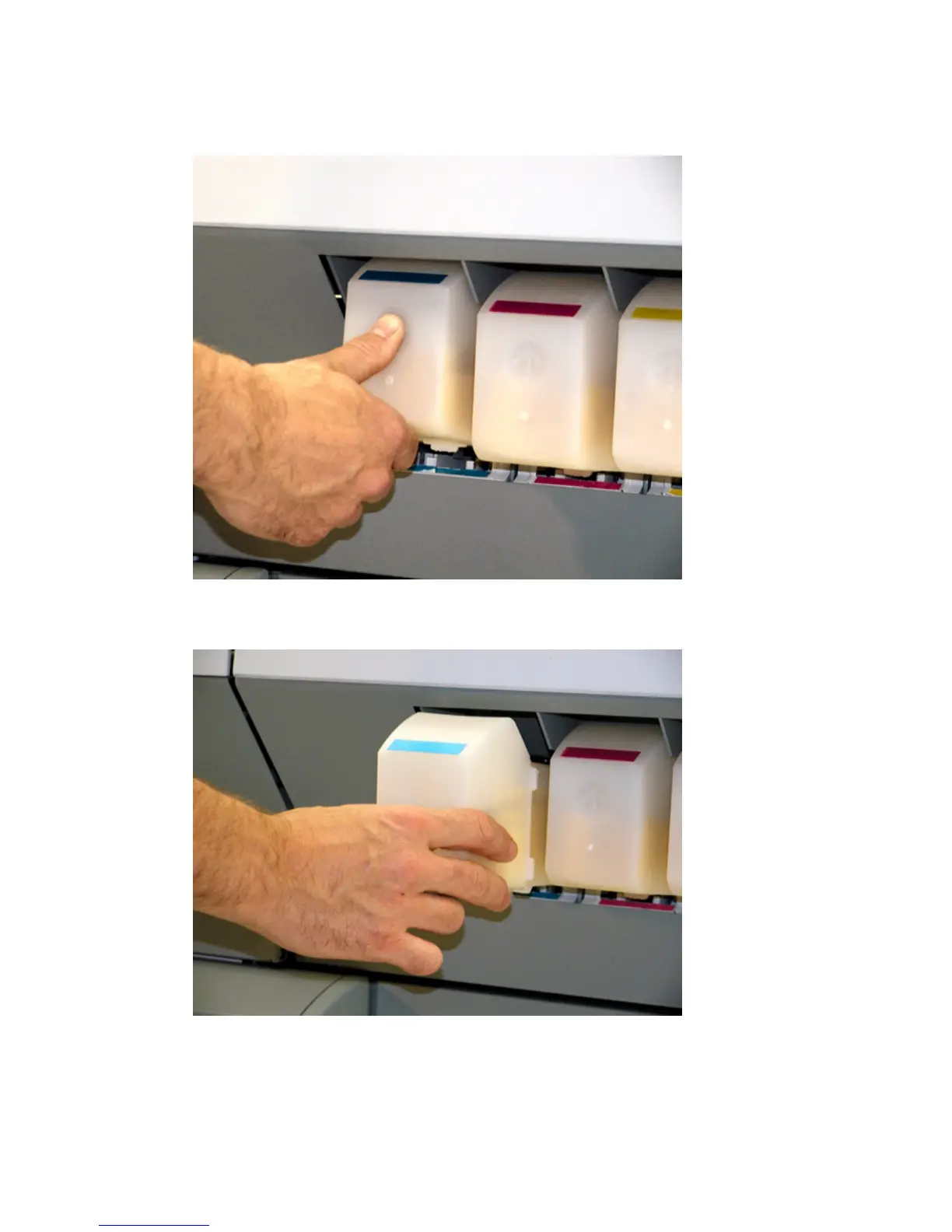 Press the dimpled recess in the ink tank inward and upward to release the ink